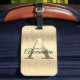Nesta etiqueta de bagagem de na moda está um gradiente de abóbora metálica dourada, como pano de fundo, com uma letra monográfica dourada e um nome que aparece na frente da letra onde você pode personalizá-la para torná-la única e exclusivamente sua. Vestes elegantes e elegantes.