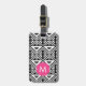 Nunca mais perder a sua bolsa! A nossa etiqueta de bagagem de vista apresenta um padrão tribal geométrico moderno em preto e branco nítido com um monograma inicial solteiro num crachá cor-de-rosa fuchsia. Adicione os detalhes de contato do cheio à parte traseira. Procurando este design em outro produto, ou em outra cor? Entre em contato comigo através do link "Perguntar a este Designer" nesta página.
