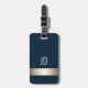 Etiqueta de bagagem azul personalizável e elegante com fita metálica FAUX e seu monograma ousado.