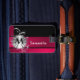 Personalize facilmente estes teste padrão moderno magenta brilhante liso elegante chique e design monogrammed barroco ornamentado preto do círculo do redemoinho do olhar do metal do fundo e o de prata do cinza adicionando suas iniciais do monograma ao modelo para fazer costume moderno original um presente personalizado. NOTE POR FAVOR o gay de prata não é metálico.
