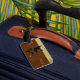 Etiqueta De Bagagem monograma para identificar uma mala marrom.