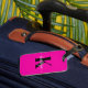 Esta simples e elegante etiqueta de bagagem rosa-quente com seu primeiro nome em uma fonte de script de tendência em branco e sua primeira inicial em uma fonte moderna em preto em um lado e um slide em uma placa para seu nome, endereço e número de telefone no outro pareceriam fabulosos em suas malas. É na moda e moda e, no entanto, muito clássico.