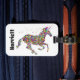 Uma etiqueta de bagagem monográfica monográfica, moderna e elegante, de unicórnio