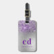 Um fundo com aparência de prata falsa, decorado com poeira brilhante púrpura. Letras cor púrpura. Personalize e adicione suas letras, iniciais e nome do monograma, suas informações de contato no verso.