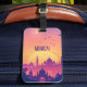 Esta etiqueta de bagagem apresenta uma ilustração representando a linha do horizonte Mumbai. O design tem cores quentes e relaxantes. Esta etiqueta é maravilhosa para alguém de Mumbai.