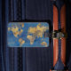 © Albena Hristova/Apple selvagem. Mapa do mundo Dourado com fundo azul