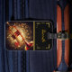 Ignore sua paixão por música com esta etiqueta de bagagem inspirada em rock-and-roll, apresentando um ouro vibrante e trompete vermelho cercado por notas musicais, este pop impressionante contra um fundo preto elegante. Perfeito para amantes da música, esta peça única captura a energia da música ao vivo e adiciona um toque ousado e artístico ao seu estilo.