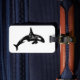 Este Tag original da bagagem caracteriza uma imagem de uma baleia da orca, feita na aguarela. O texto pode ser personalizado para caber suas necessidades.