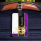 Personalize facilmente estes violeta roxa lisa elegante chique teste padrão moderno colorido e design monogrammed barroco ornamentado branco do círculo do fundo e do redemoinho do olhar do metal do ouro em uma listra preta adicionando suas iniciais do monograma ao modelo para fazer costume moderno original um presente personalizado. NOTE POR FAVOR o ouro não é metálico.