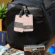 Você pode viagem com estilo com este design de cinza que apresenta pontos brancos e cor-de-rosa pincelado. Você pode adicionar seu nome ou monograma na frente e outras informações na parte traseira. Estas bolinhas cor-de-rosa e branca serão perfeitas como presente personalizado.