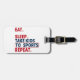 A imagem apresenta um design humorístico baseado em texto sobre um fundo de tecido de cor clara, possivelmente uma camiseta ou camiseta. O texto é arranjado a negrito, em letras maiúsculas e com a seguinte redação: "EAT. DORMIR. LEVE AS CRIANÇAS AOS ESPORTES. REPITA." As palavras "EAT", "SLEEP" e "REPEAT" estão em preto sólido, enquanto que "TAKE KIDS TO SPORTS" está traçado em preto com um interior oco. A design reflete com humor a natureza repetitiva da parentalidade, especificamente a rotina de gestão das atividades desportivas infantis. O layout é simples e atraente, com foco na tipografia ousada.