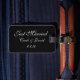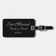 Marca de bagagem personalizada mostrada em preto/branco com texto de Recem casados. Personalize esta etiqueta e altere os nomes e a data para a sua. Você pode até mudar de cor.