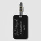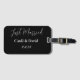 A etiqueta de bagagem personalizada é mostrada em preto-e-branco com texto de Recem casados e nomes de exemplo, personalize esta etiqueta e altere os nomes de exemplo e a data para a sua com este modelo. Mostrado com o slot da placa. Você pode até mudar de cor se quiser.