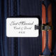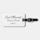 Marca de bagagem personalizada mostrada em preto/branco com texto de Recem casados. Personalize esta etiqueta e altere os nomes e a data para a sua. Você pode até mudar de cor.