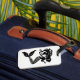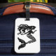 Etiqueta de bagagem personalizada mostrada em preto e branco com uma impressão de sereia de rico giro e com um slot cartão de visita no outro lado. Personalize esta etiqueta e adicione o texto ou comprar como está.