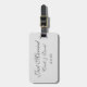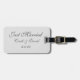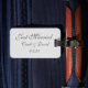 A etiqueta de bagagem personalizada é mostrada em uma cor de cinza clara com texto de Recem casados. Personalize esta etiqueta e altere os nomes e a data para a sua.