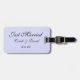 A etiqueta de bagagem personalizada é mostrada na lavanda com o texto do Recem casados. Personalize esta etiqueta e altere os nomes e a data para a sua, e coloque também a sua fotografia na parte de trás da etiqueta. Você pode até mudar de cor.