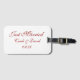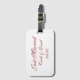 A etiqueta de bagagem personalizada é mostrada em um estilo vermelho e branco com texto de Recem casados na parte frontal e slot de placa na parte traseira. Personalize esta etiqueta e altere os nomes e a data para a sua.