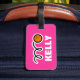Etiqueta de bagagem personalizada com design de esportes de basquete fofos. Cor rosa ou personalizada com nome. Acessórios de bagagem divertida para ele ou para ela. Etiqueta a sua mala ou mala.