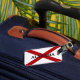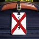 Uma bandeira gráfica do estado do Alabama em uma etiqueta de bagagem. A etiqueta de bagagem tem o texto (personalizável) Alabama ou o texto de sua escolha na frente e modelos para sua personalização no verso.