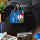 Etiqueta de bagagem perfeita para o seu pequeno enrolador. Esta etiqueta de baseball tem uma luva de baseball, uma luva de baseball, um taco de baseball e um chapéu de baseball. O nome do garoto está escrito no beisebol. Um fundo azul brilhante facilita a busca.