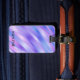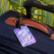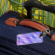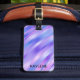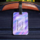 Apresenta traços de fita iridescentes. Personalize com um nome na frente e um nome e endereço na parte traseira.