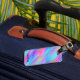 Possui um design de neon abstrato. Personalize com um nome na frente e um nome e endereço na parte traseira.