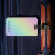 Design apresenta um gradiente do arco-íris com faíscas sutis. Pode ser personalizado com seu nome e detalhes de contato.