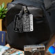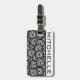 pilha aleatória branca e preta de manchas de eco etiquetas de bagagem personalizadas com tira de couro: branco com fonte de luz gótica vertical