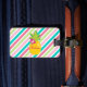 Com um design perfeito e um material de alta qualidade, este design apresenta um fundo riscado diagonal, rosa, verde e azul com um abacaxi amarelo brilhante no topo. Personalize o dentro do abacaxi com seu nome em qualquer cor de sua escolha. Escolha sua etiqueta de bagagem hoje!