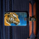 Fim bonito acima da fotografia lateral do tigre feita no design da arte da pintura a óleo, mostrando as cores alaranjadas, pretas, brancas e pretas vívidas.