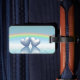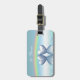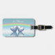 Etiqueta de bagagem com meu design de platina pastel flutuando na água sob um arco-íris. O texto diz "70 Anos".