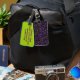 etiqueta de bagagem de impressão pop-leopardo. O lado do texto pode ser personalizado.