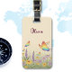 Esta etiqueta de bagagem personalizada apresenta um maravilhoso jardim de borboletas pastel onde borboletas aladas no arco-íris dançam entre flores macios. Com um fundo calmante de matizes cor-de-rosa, azuis, lavandas e margaridas amarelas, essa ilustração charmosa e caprichosa cria uma atmosfera mágica e serena.