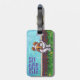 Tag de cão bonito de St Bernard da parada animal para a bagagem criada Imagine isso! Características de design nosso caráter tan e branco bonito do cão que está em uma jarda gramínea com uma cerca do tijolo vermelho, um céu azul textured e uma beira roxa ondulada brincalhão pintados por nosso artista talentoso do livro de crianças, Traci Van Wagoner. O filhote de cachorro do divertimento está na posição do jogo com a uma pata aumentada. Esta arte do animal de estimação do divertimento é perfeita para amantes do cão de St Bernard e amantes animais cómicos da arte de todas as idades. Em muitos de nossos produtos lunáticos do doggy de St Bernard você encontrará este filhote de cachorro bonito vir e ir com a cabeça de cão brincalhão de St Bernard em um lado e o cinosuro engraçado no outro. Junte-se à parada animal e traga-se um sorriso à cara de alguém que você ama com um presente de nosso cão bonito de St Bernard. Woof!