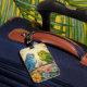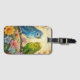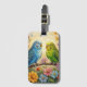 Cute luggage tag for bird lovers with impasto painting style blue and green parakeets and flowers.
