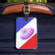 Etiqueta de bagagem com um disco voador e texto|"Próspera Viagem" que pode ser personalizada. Este disco voador tem listras azuis, brancas e vermelhas como fundo. Destaque-se da multidão com esta adorável etiqueta de bagagem de próxima geração.