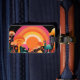 A vibrant psychedelic landscape filled with colorful mushrooms glowing beneath a radiant sunset. This imaginative design blends retro color palettes with dreamy fantasy elements, creating a magical nature scene full of warmth, energy, and wonder. The bold rainbow sunset and whimsical mushroom forest evoke vintage psychedelic art and surreal nature aesthetics.