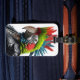 Engraçado Punk Rocker Parrot com o penteado mohican vestindo uma jaqueta de couro.