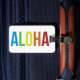 Peça ao seu pequeno que faça a conversa com a palavra "aloha" escrita em letras arco-íris.