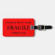 Etiqueta de bagagem com Frágil, manuseie com cuidado, Obrigado. Texto preto sobre fundo vermelho. Personalizável. Personalize com seu nome e informações usando os modelos fáceis. A cor da fonte, o estilo da fonte e o tamanho da fonte são personalizáveis.
