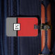 Etiqueta de bagagem impressa com a pintura original em bloco de cor acrílica.
