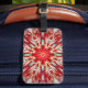 Esta etiqueta de viagem apresenta um brilhante vermelho e cores mistas, uma design de mandala estilo estrela de explosão que criei de uma fotografia de um fardo de materiais de seda mistos. As cores iluminarão sua bagagem e serão claramente visíveis à distância.