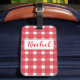 Bela etiqueta de bagagem personalizada, padrão de gingham vermelho e branco, é um design clássico que contém um aspecto controlado ou xadrez de búfalos, design lindo e colorido. Compre uma hoje!