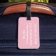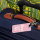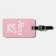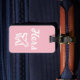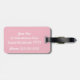 Etiqueta de bagagem rosa e branca