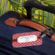 Um padrão cor-de-rosa e castanho enfeita esta etiqueta de bagagem fofa. Personalize esta etiqueta de bagagem de acordo com as suas necessidades. O design é da arte original.