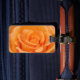 Belo rosa de laranja com orvalho matinal fotografado num jardim botânico