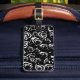 Um design de rosas preto e branco. Esta etiqueta de bagagem única deve ser fácil de identificar a sua mala na solicitação de bagagem.