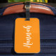 Personalize esta etiqueta de mala com caligrafia de script moderna e divertida com o seu nome! Esta é a versão laranja brilhante. Ótimo para suas férias de verão, despedida de solteira, acampamento de verão das crianças ou férias de primavera!