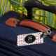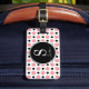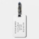 Design cor-de-rosa, preto e prateado com nome personalizado e detalhes de contato no lado oposto.